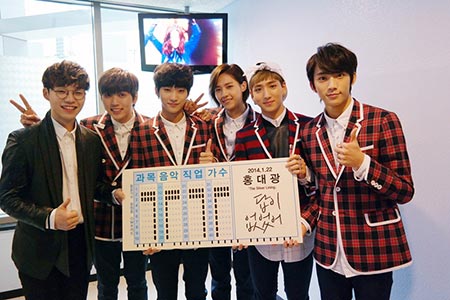 사진 속 홍대광은 신곡 ‘답이 없었어’에서 차용한 듯 ‘답 없는 OMR 카드’와 함께 포즈를 취하고 있다. 이 날 홍대광과 함께 19일 SBS 인기가요를 통해 컴백 무대를 꾸민 B1A4는 ‘초통령’으로 군림하는 아이돌답게 홍대광과 상큼한 표정과 포즈로 훈훈한 분위기를 연출했다는 후문이다.