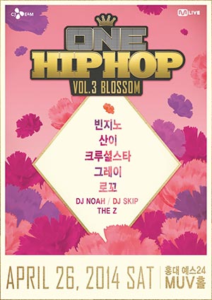 4월 26일 개최되는 ‘원 힙합 Vol.3 블라썸’. ‘원 힙합’은 2013년 힙합의 대중화에 힘 쓰고 있는 CJ E&M의 공연 브랜드. 지난 해 9천여 관객과 함께 한 ‘원 힙합 페스티벌’을 시작으로 가장 화끈한 연말 파티로 손꼽히고 있다.