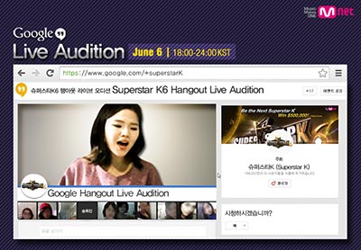 Mnet은 지난 3일 “슈퍼스타K6가 해외 거주자들과 국내 지역 예선에 미처 참가하지 못한 도전자들을 위해 오는 6월 6일(목) 구글플러스의 화상 채팅 서비스 ‘행아웃’을 이용한 온라인 라이브 오디션을 진행할 예정”이라고 밝힌 바 있다.