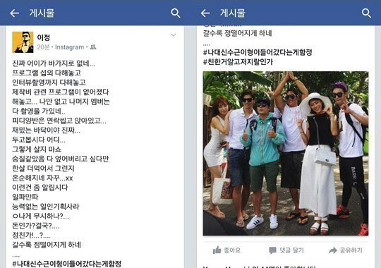 이정은 자신이 그렇게 당하는 것을 두고 “능력 없는 일인기획사라 ㅇ나게 무시하나? 돈인가? 결국? 정친가? 갈수록 정떨어지게 하네”라며 울분을 토했다.