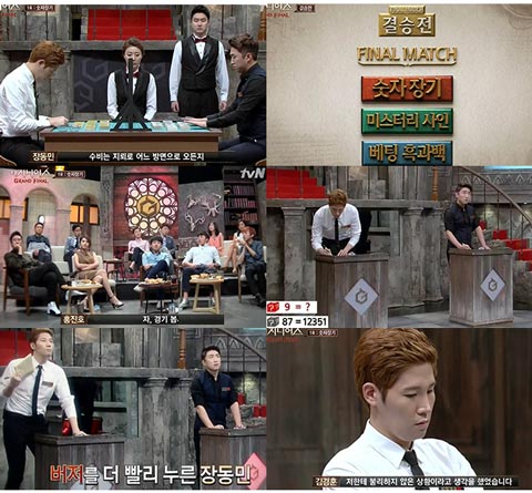 결승으로 진행된 3개의 게임인 ‘숫자 장기’와 ‘미스터리 사인’. 그리고 ‘베팅 흑과 백’에서 장동민은 두 게임만으로 김경훈을 압도적으로 제압해 우승을 거머쥐었다.
