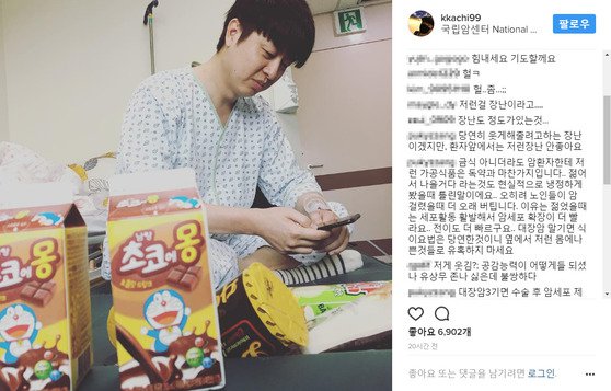 불과 하루 전 유상무의 대장암 수술에 대한 기사 중 눈에 띄는 기사 하나가 있던 것은, 병문안을 간 유세윤이 올린 인스타 사진이 네티즌의 뭇매를 맞고 있다는 기사였다. 또 하나는 장동민이 오락하는 모습이 뭇매맞고 있다는 것.