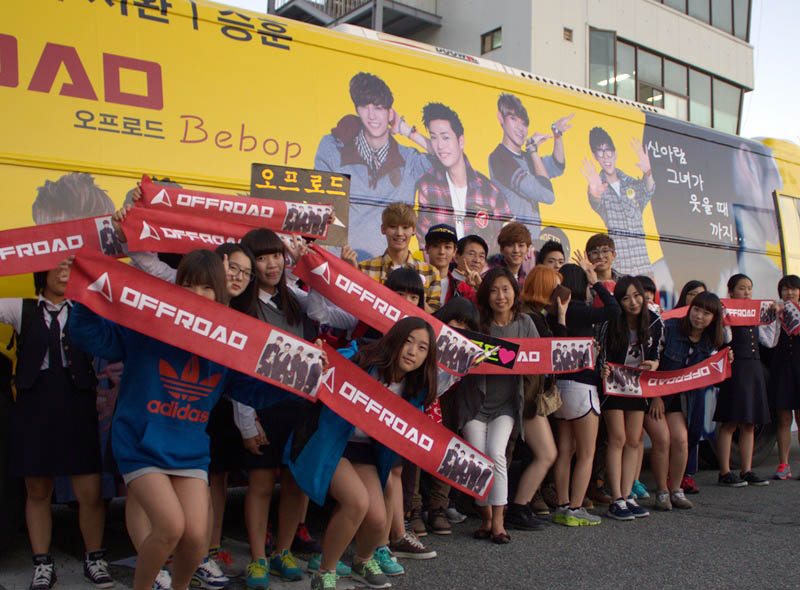 오프로드 소속사 관계자는 ‘오프로드 홍보버스’를 운행하기 시작했다고 28일 밝혔다. 오프로드의 전용버스는 40인 이상이 탈 수 있는 규모로, 외관에는 오프로드 멤버들의 사진이 노란색과 하늘색의 하프앤하프 기법으로 전면에 프린팅 됐다. 아이돌을 알리는 목적으로만 쓰이는 일반 프린팅버스와 달리 오프로드 홍보버스는 현재 응원차 현장을 찾은 팬들의 편의를 위해 운행되고 있다.